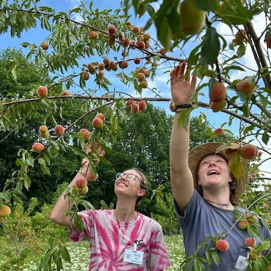 The orchard on our upper campus includes a mature apple orchard, and a younger orchard of peach, apple, pear, and a variety of additional fruit trees and berry plantings. We aim to have a diversity of species in our orchard to create a robust ecosystem full of pollinators and beneficial insects.