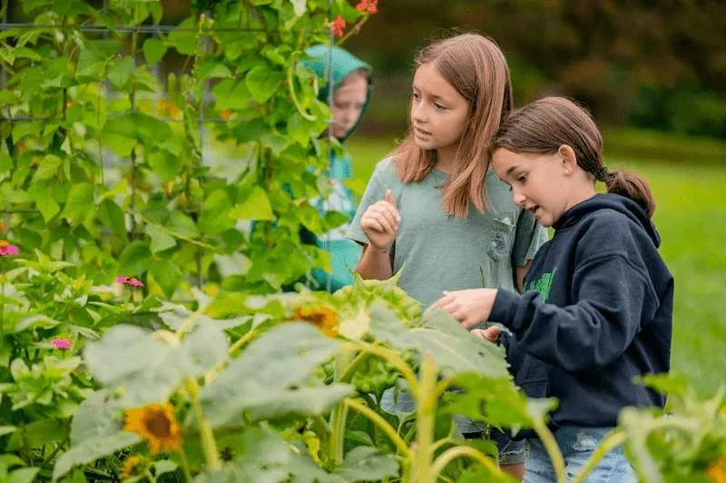 The pollinator and rain gardens are designed to support pollinators and help manage water flow on our upper campus. They include a diverse mix of native plant species and colorful blooms. We utilize these spaces throughout the season to observe insect activity, harvest blooms for flower arrangements, and to demonstrate seed-saving practices with participants.