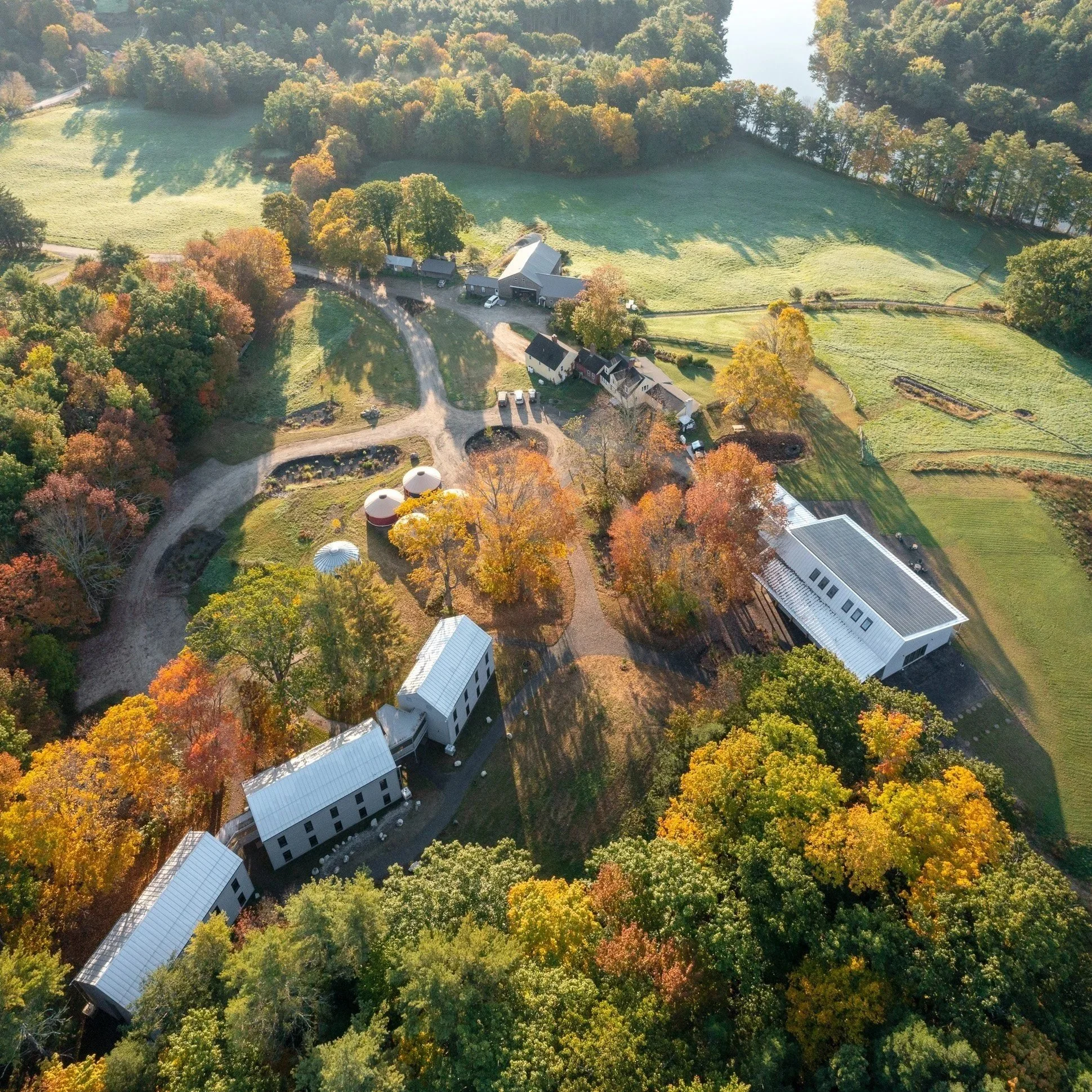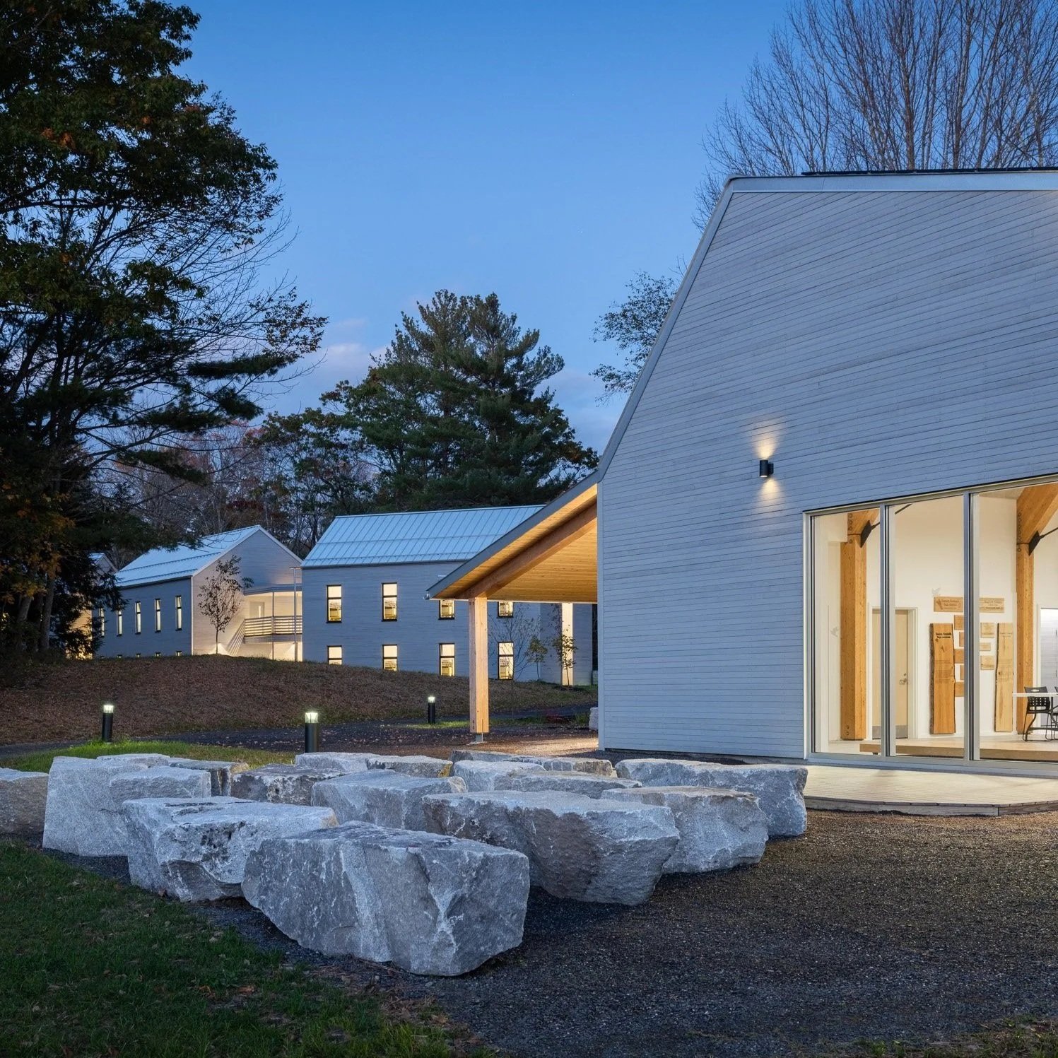 The design of our Living Buildings is thoughtfully integrated into the natural beauty of the landscape. The Dormitory, tucked among towering pines, features floor-to-ceiling windows that blur the line between indoors and out. Meanwhile, the wide porch of the Poland Spring® Education and Dining Commons overlooks the Saco River, offering sweeping views that allow the campus to fully embody and celebrate the essence of Maine’s landscape.