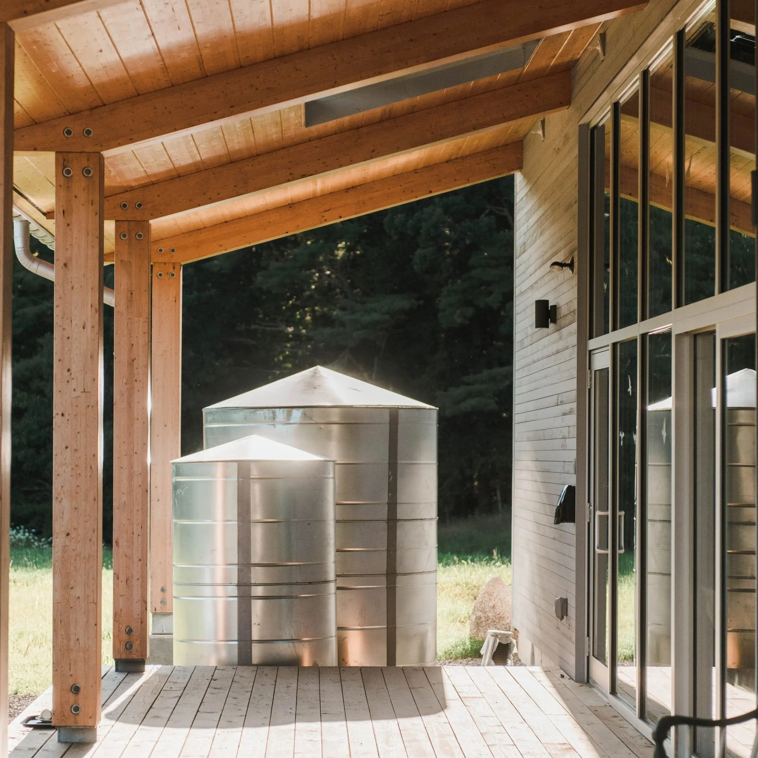 Every material used in construction was carefully vetted to meet the highest standards of sustainability, aligned with the rigorous requirements of the Living Building Challenge. From locally sourced white pine and energy-efficient lighting to creative reuse of secondhand materials (like a repurposed diner sink!), our buildings are designed with sustainability at every level.